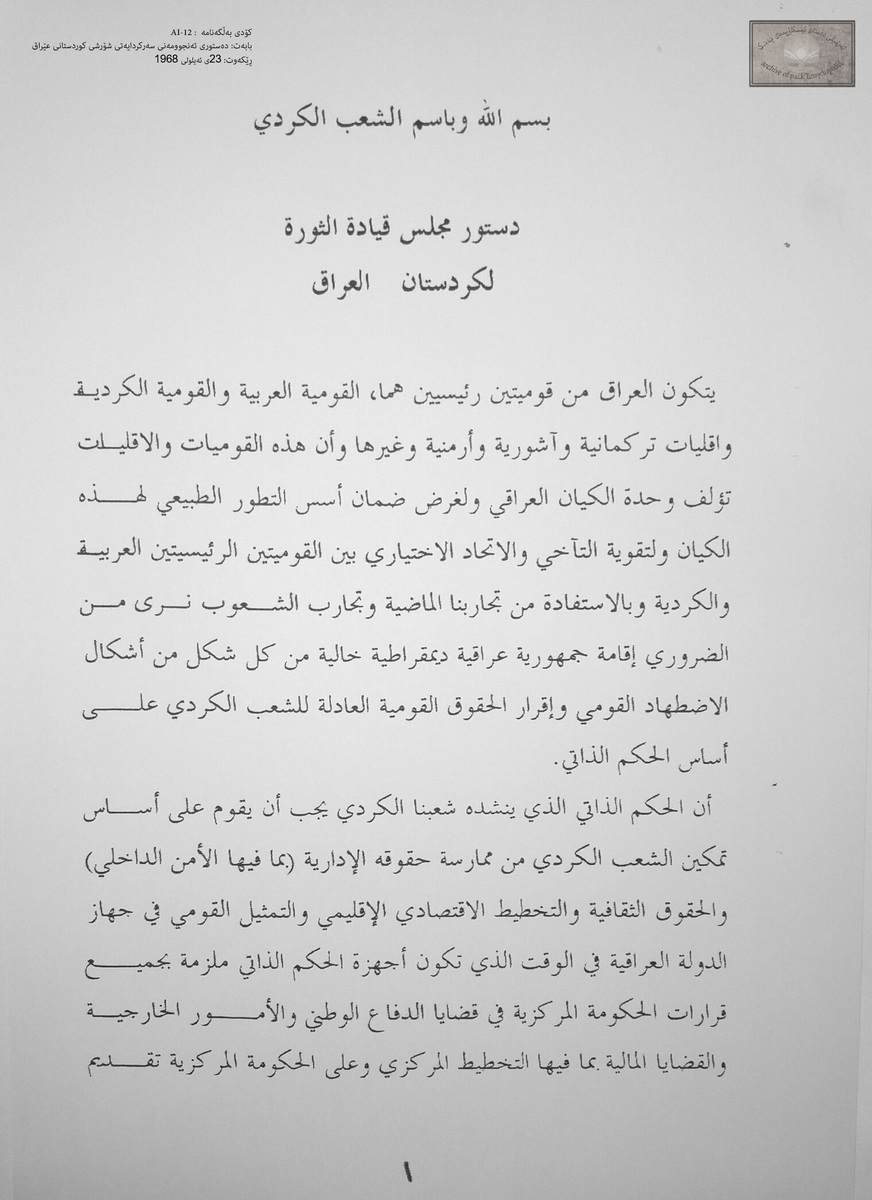 دەستوری ئەنجوومەنی سەرکردایەتی شۆڕشی کوردستانی عێراق
