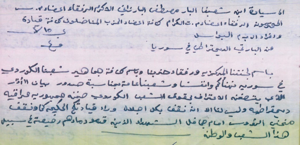 بيانكم الخالده دعم اكيد التأخي العرب والأكراد والش...